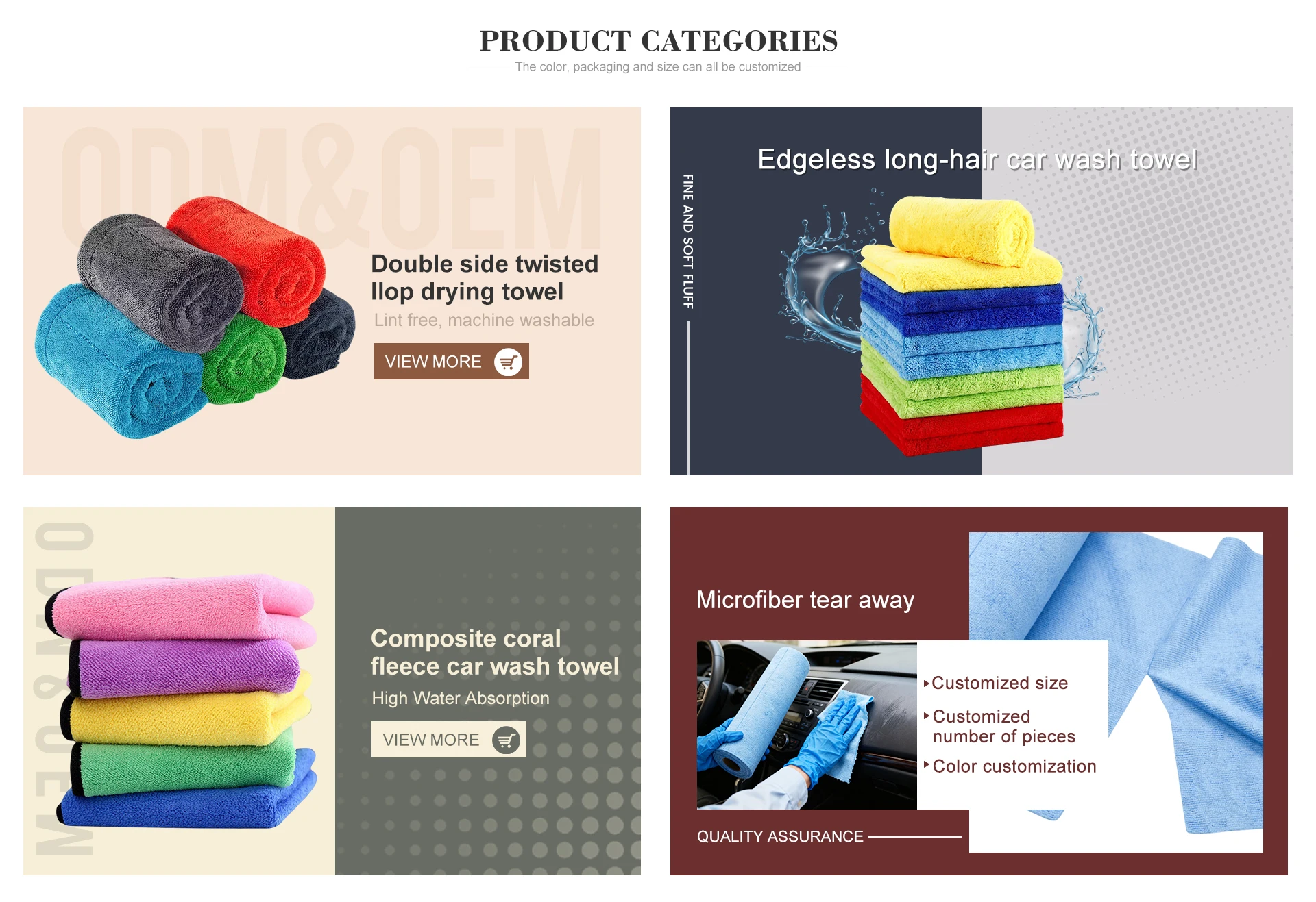 Principais produtos:Toalha de limpeza de microfibra, toalha de praia, toalha esportiva, toalha cosmética, toalha de detalhamento automático